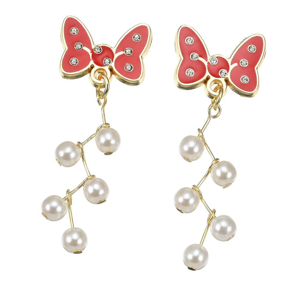 ミニーマウスのトレードマーク、ドット柄リボンに5粒のパールビーズをあしらった華やかなピアスが登場です。ドット部分が小さなラインストーン、ビーズはジグザグにあしらわれていてユニークなデザインがかわいい♪