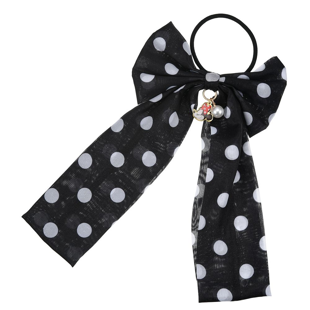 軽やか素材にミニーマウスのダイカットチャーム、パールビーズをあわせた華やかなドット柄リボンです。ヘアポニーなので簡単にかわいいヘアアレンジを楽しめます!おしゃれしてお出かけしたいときにもオススメです。
