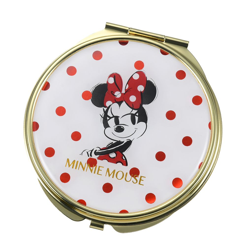 小さめのドット柄×大人っぽいミニーマウスのアートがクールな印象のコンパクトミラーです。持ち運びやすいサイズに二面仕様(等倍・拡大)なので、お出かけ先での身だしなみチェックやお化粧直しにもぴったり♪