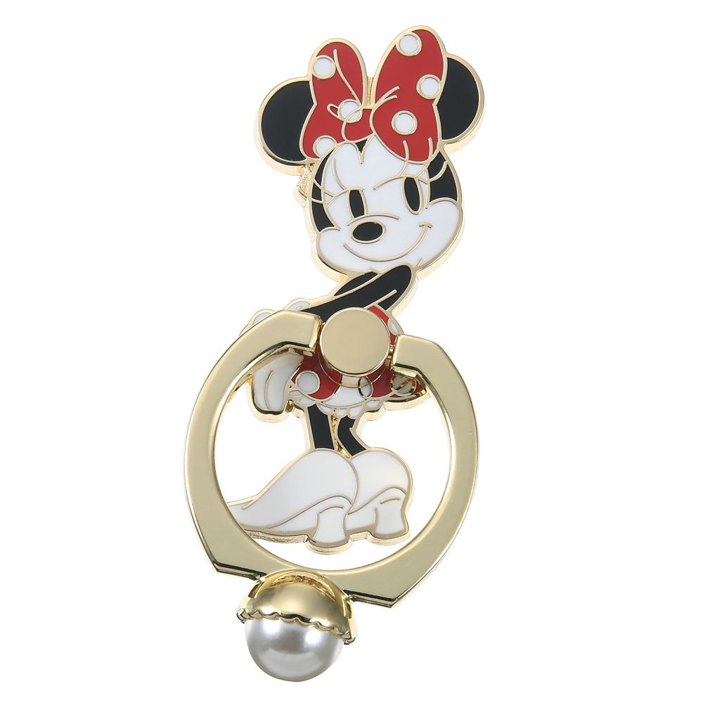 まるでアクセサリーのように1粒のパールをあしらった、ミニーマウスのスマートフォンリングです。大人っぽいタッチのキャラクターのダイカットプレートと、上品なゴールドパーツがお手持ちのスマホをランクアップ☆