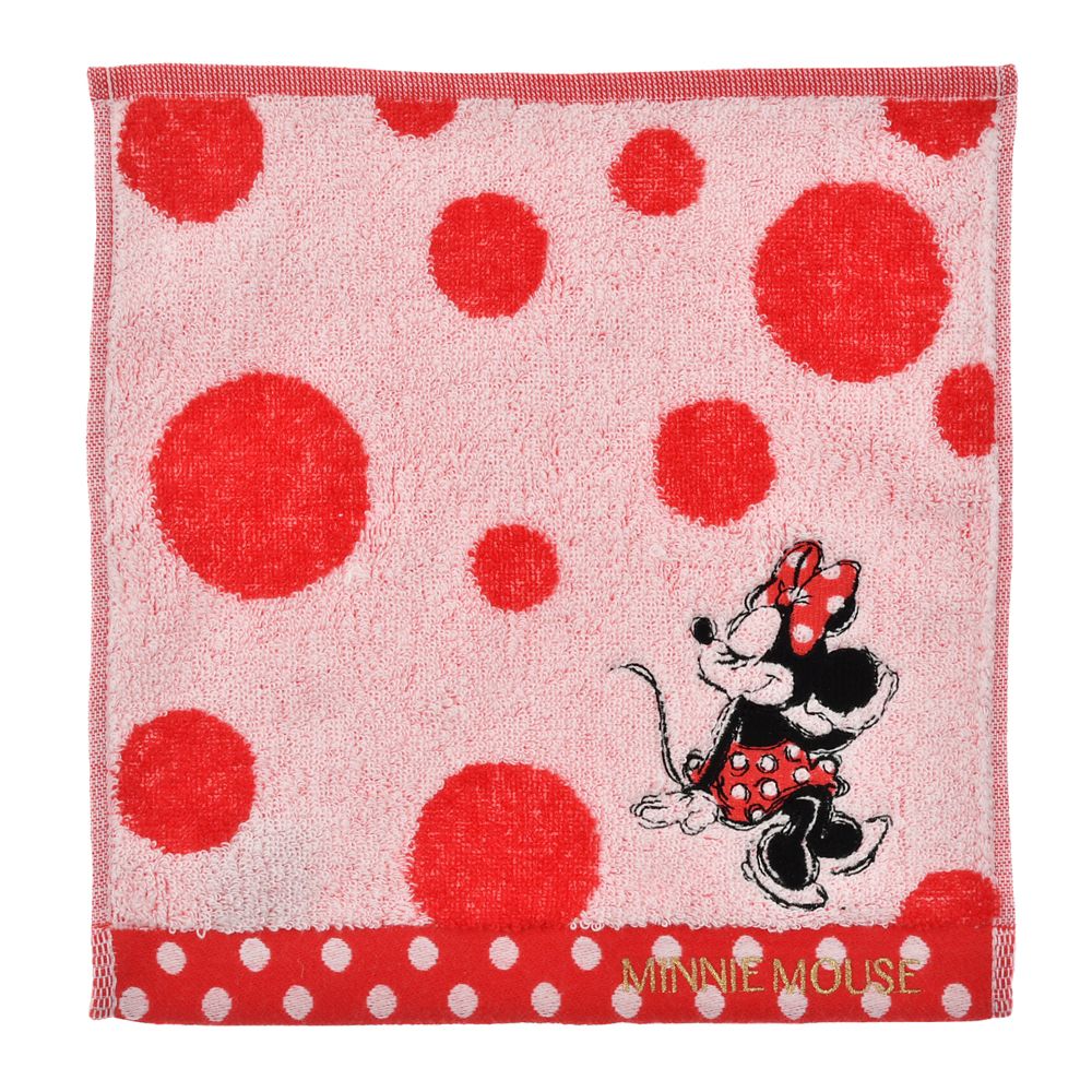 ランダムドットをジャガード織で表現したミニーマウスのミニタオルです。ネームロゴは金色に輝くラメ糸の刺繍、大人っぽくきめたミニーマウスのアートがポイント☆綿100%で使い心地もいいので、プレゼントにも◎