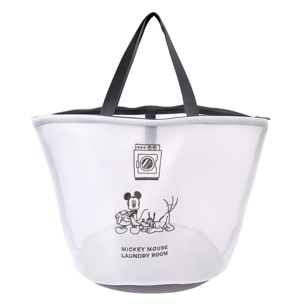 コインランドリーに行くのにもぴったりなトートバッグ型の洗濯ネットです。持ち手は内側に収納できるので、そのまま洗濯できます!洗濯をするミッキーマウスを邪魔するいたずらっ子なプルートの刺繍もキュート♡