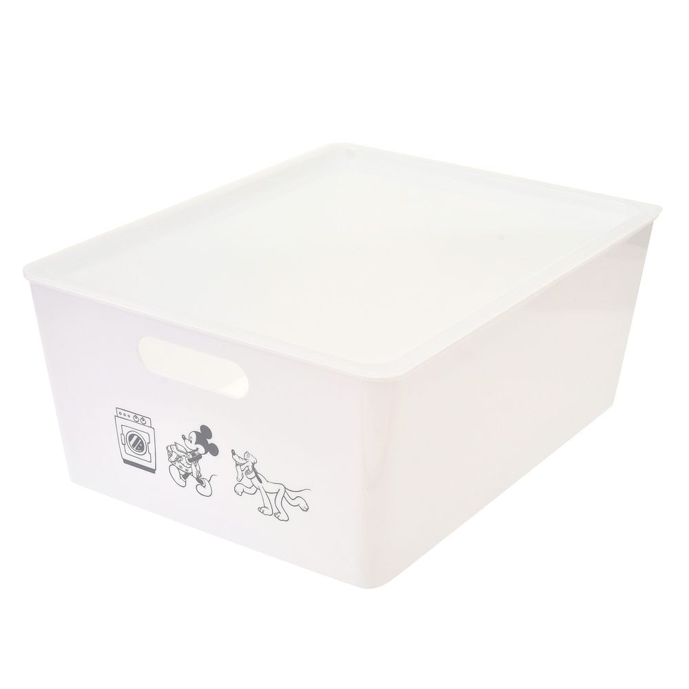 半透明でほんのり中身が見られるフタがついた収納ケースです。清潔感のある白いカラーとかわいいミッキーマウス&プルートのデザインがおしゃれな収納をかなえます♪Sサイズとあわせて使ってもデッドスペースが出来にくいデザイン。