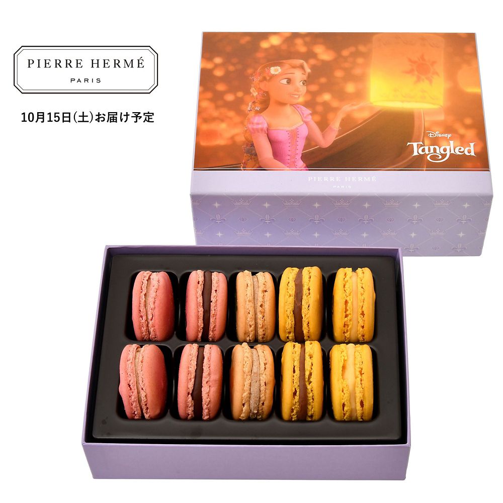 10月は『塔の上のラプンツェル』をイメージしたマカロンが届きます。BOXにはランタンをうっとりと眺める美しいラプンツェルの姿が。