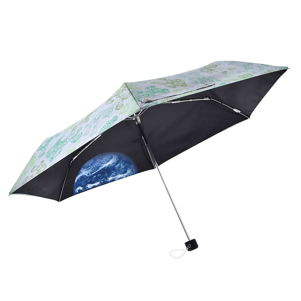 表にはバズ・ライトイヤーのほか映画で活躍する仲間たちやロボットのソックスが総柄で描かれています。傘を開いた内側はまるで宇宙のように黒く、地球がプリントされたおしゃれなデザイン♪