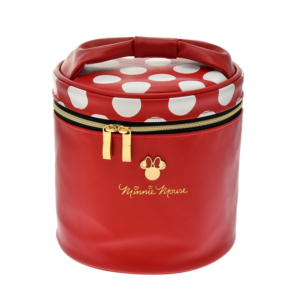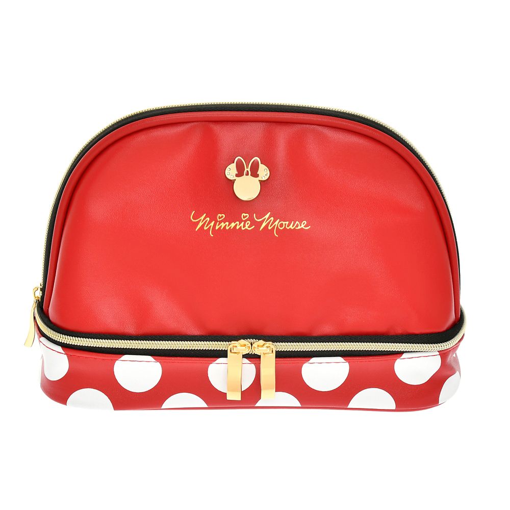 レザー調で高級感のあるバニティポーチが登場です。ドット柄にリボン、キャラクターフェイスのメタルパーツなどミニーマウスらしさがあふれます♪収納力ばつぐんなのが嬉しい!