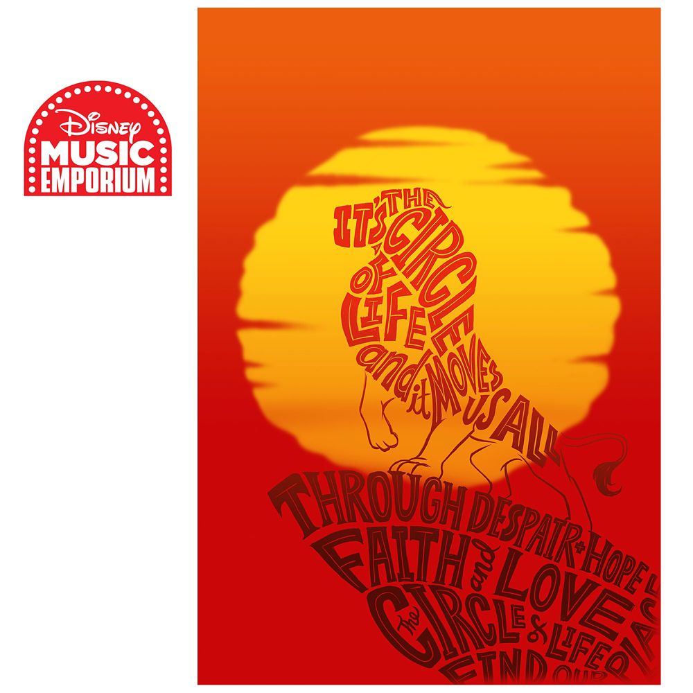 ディズニーのファインアーティストである、アメリカ人画家のティム・ロジャーソンによるアートポスターです。 『ライオン・キング』の名曲『Circle of Life』の歌詞でシンバとプライドロックを表現しています。